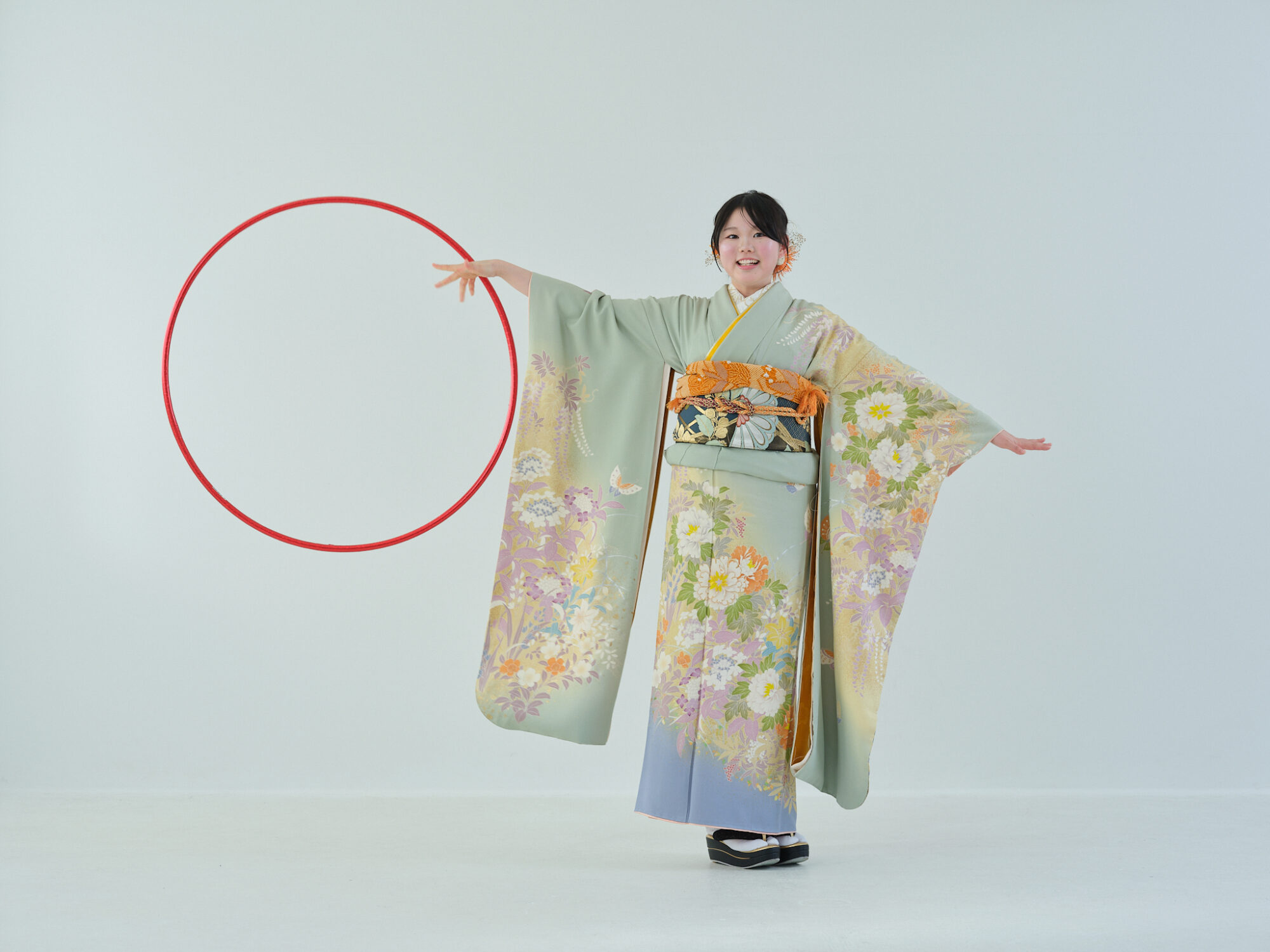 フラフープと一緒に。